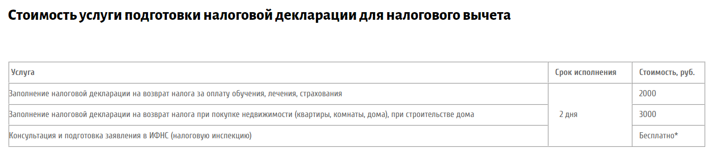 * при заказе заполнения налоговой декларации